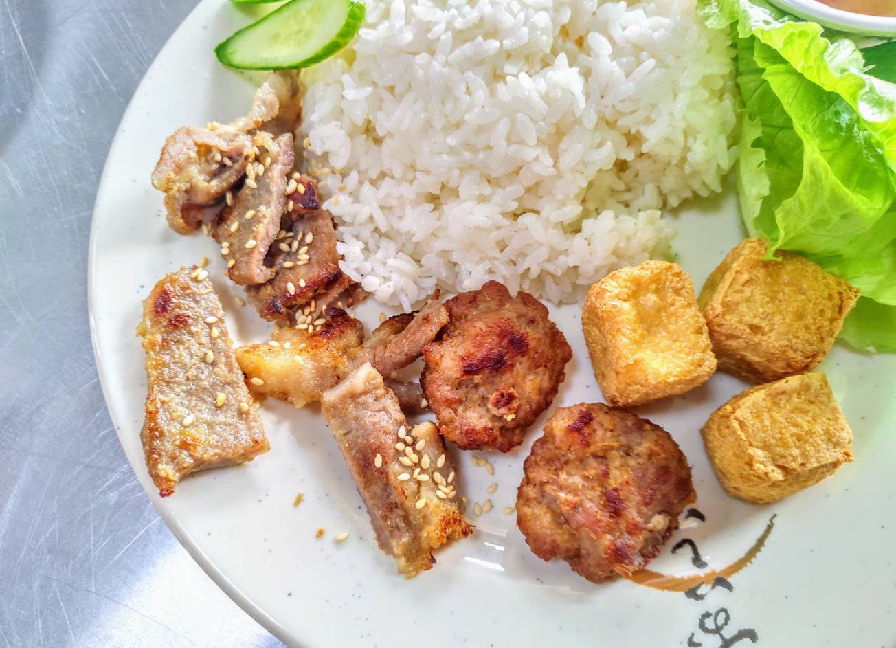 一次可以吃到炸春捲、炸肉丸還有烤肉三樣肉品