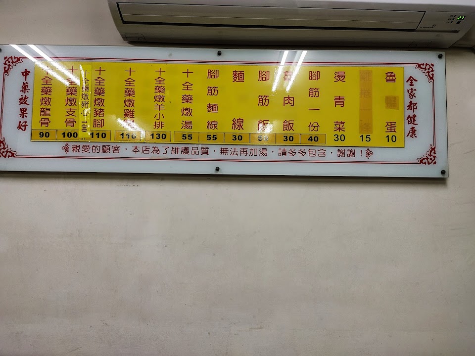 餐點選項不多,很專一,主要的十全藥補湯,不會油,還蠻甘甜的。夏天吃,並不會覺得躁熱,價格偏高,(以市面的藥燉排骨價格來說)支骨可以再多一點,滷肉飯好吃(推腳筋飯),內用餐桌並不是很多,但在和美這,覺得已經很滿足了…生意很好,店門口為大十字路口,停車並不是很方便(所以在內用時,大多看到當地人外帶使用)。內用餐具使用白鐵不銹鋼,蠻衛生的。還沒吃過它的藥燉豬心(這次沒點。豬腳/支骨/龍骨/腳筋飯/滷肉飯都好吃)