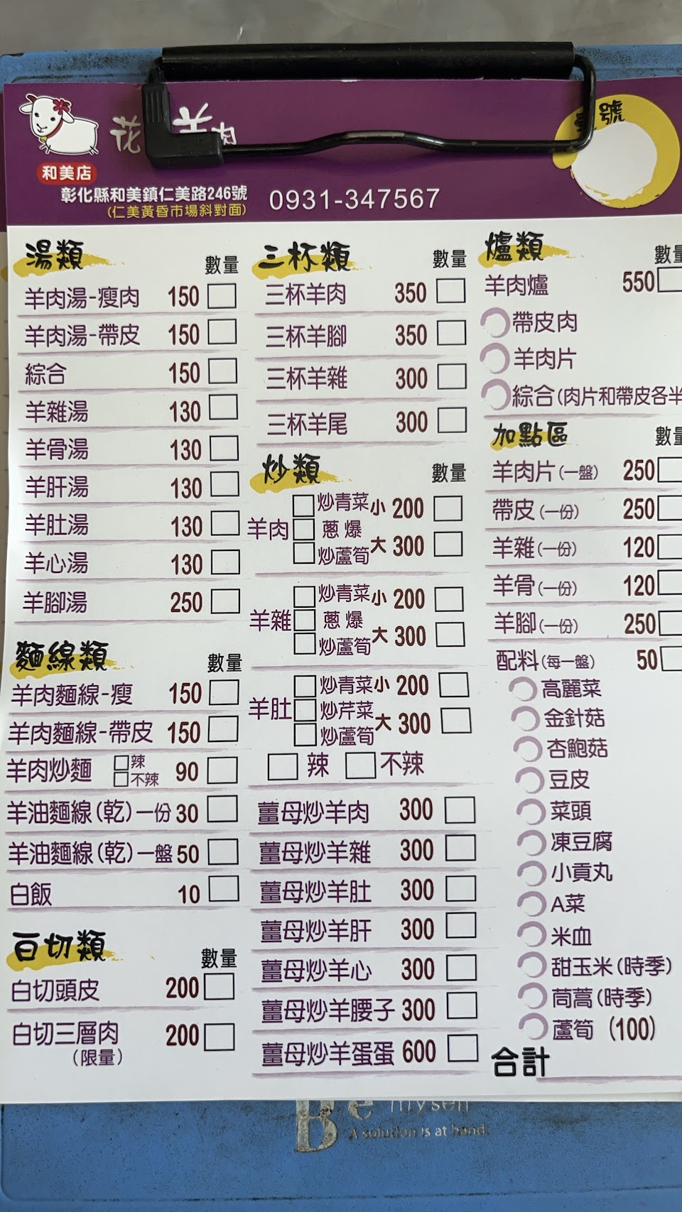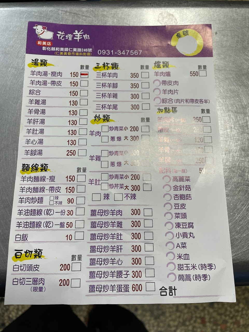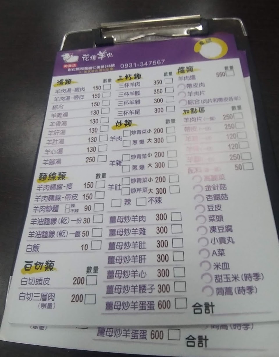 2024最新在地推薦餐廳的菜單_和美花壇羊肉的菜單、圖片