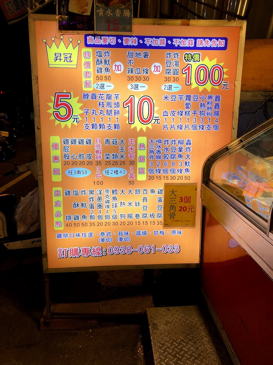 昨天看了評論之後前往購買,東西確實便宜,但我們點了炸豆腐,咬開時居然有水流出來…?其他的並沒有像評論說的這麼厲害,也是第一間沒有吃完的炸物。