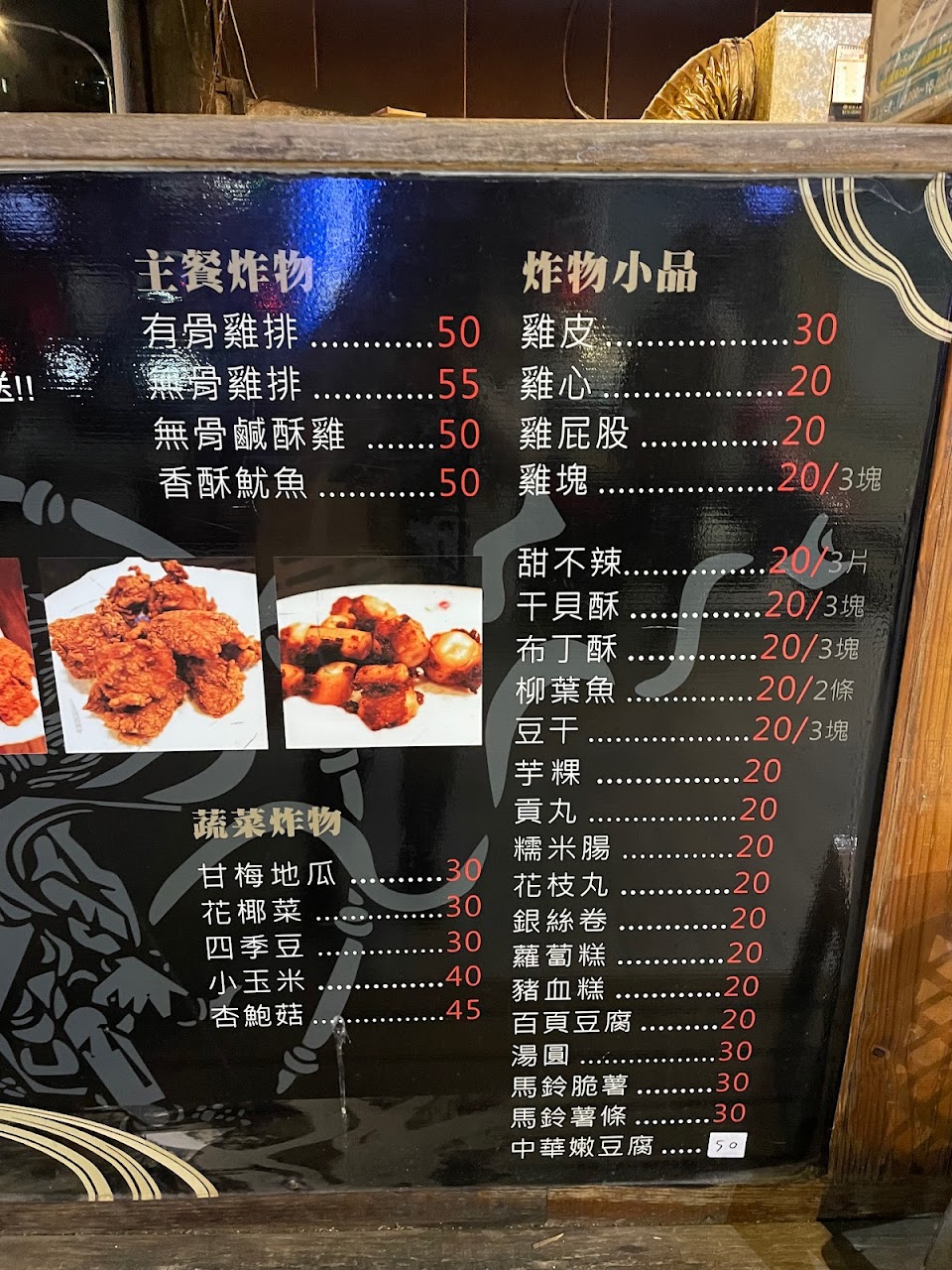 每次必點:甜不辣(酥脆不油膩)。雞排(只要醬料)是小孩的最愛。無骨雞塊(和一般鹽酥雞不同肉多汁多)….還有其他都好吃? …