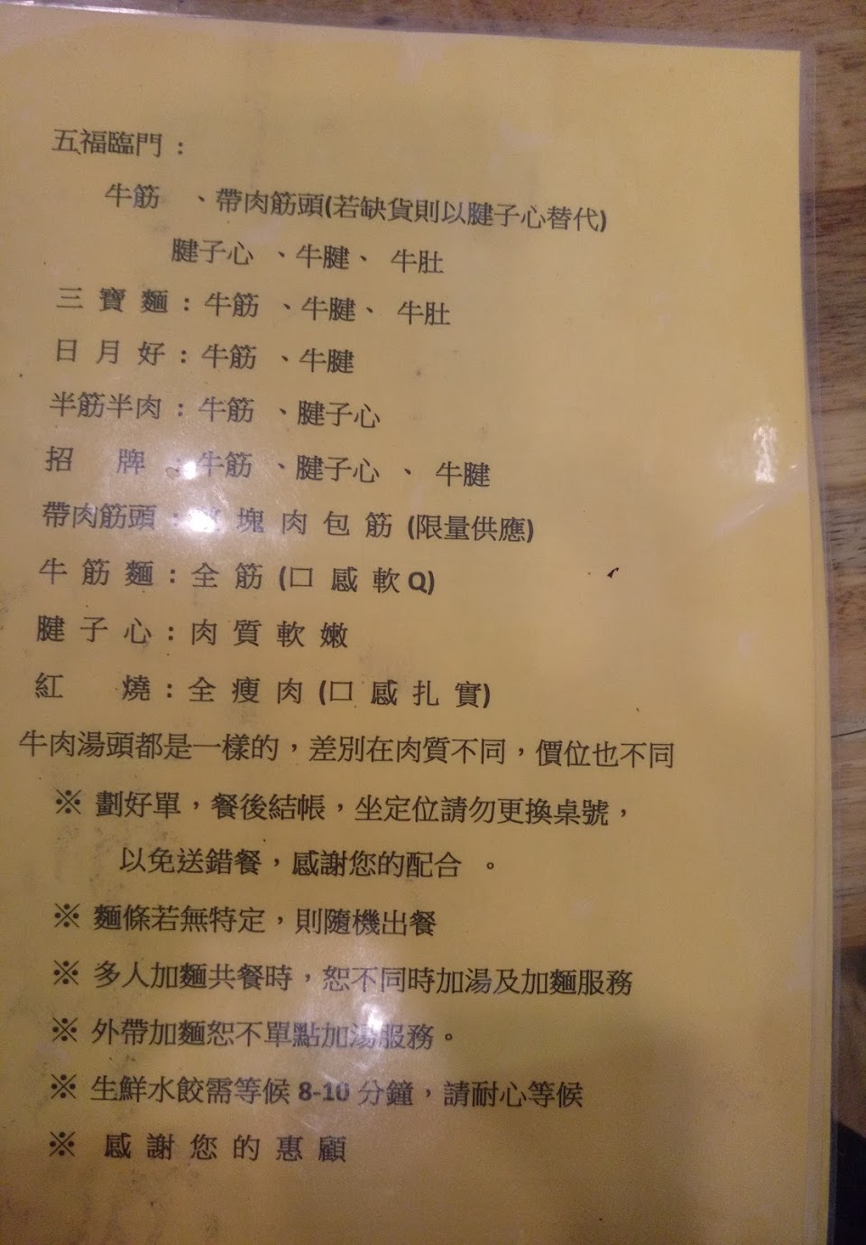 高雄人。第一次來吃是5月21是有當地人帶我來吃,第一次吃覺得很好吃,有小蕃茄肉也多吃起來很軟嫩香,口齒留香,非常好吃.但今天來吃看到菜單很奇怪其中有2個項目叫含香水餃和百香米雪糕;不知道這是什麼跟上吃的水餃有不一樣嗎?。今天點牛肉麵肉質偏柴味道怪怪的有點酸,很可惜,水餃然是必點的項目,非常好吃皮厚有嚼勁肉多湯汁飽滿。烏梅湯有點偏淡。以上真心建議,下次我還會再來吃…希望還可以吃到第一次的牛肉麵的好吃新鮮q嫩。