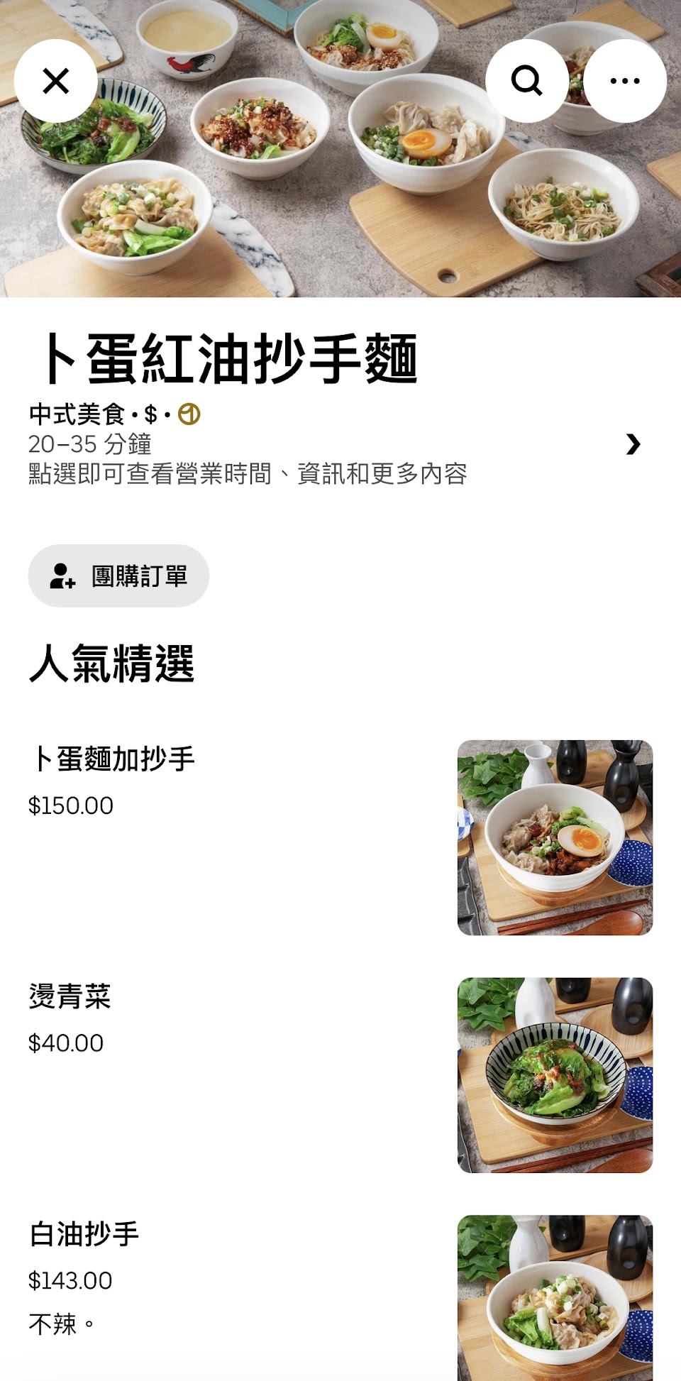 卜蛋抄手麵 服務 內用 餐點類型 午餐 平均每人消費金額 $1-200
