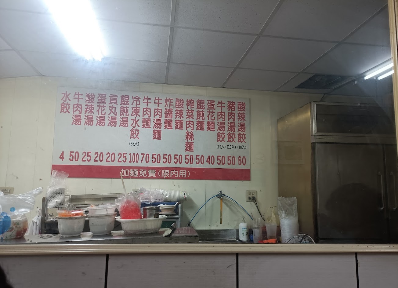 價目表還停留在20年前,加麵還不用錢,麵條用細麵,但有咀嚼口感,用餐環境略差,但這個比路邊攤還便宜的價位就不用嫌棄了