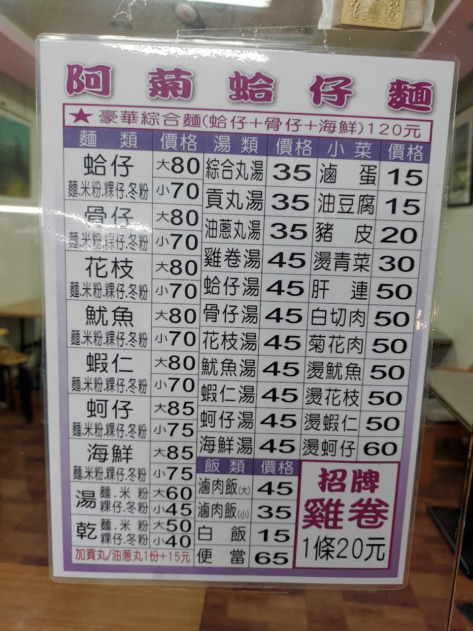2024最新在地推薦餐廳的菜單_阿菊蛤仔麵的菜單、圖片