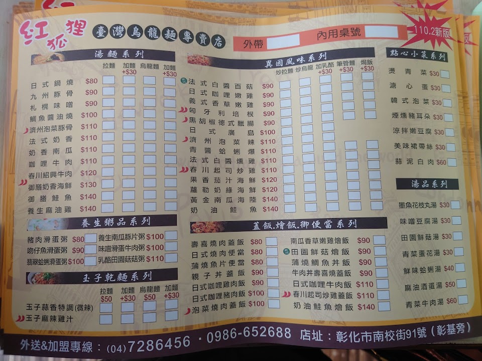 2024最新在地推薦餐廳的菜單_紅狐狸台灣烏龍麵專賣店的菜單、圖片