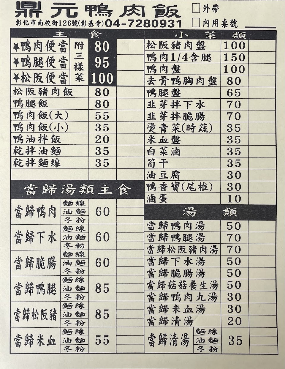 2024最新在地推薦餐廳的菜單_鼎元鴨肉飯的菜單、圖片
