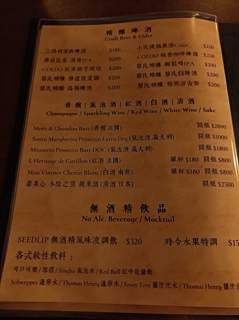 酒可以量身訂製很不錯,但是如果有菜單選擇會比較好。