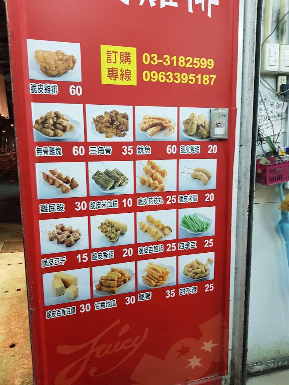 雞排酥脆好吃 甜不辣酥脆不軟爛 米血好吃 三角豆干很特別,外酥內嫩,米腸外面有裹酥皮。每樣都好吃,建議電話先訂購。