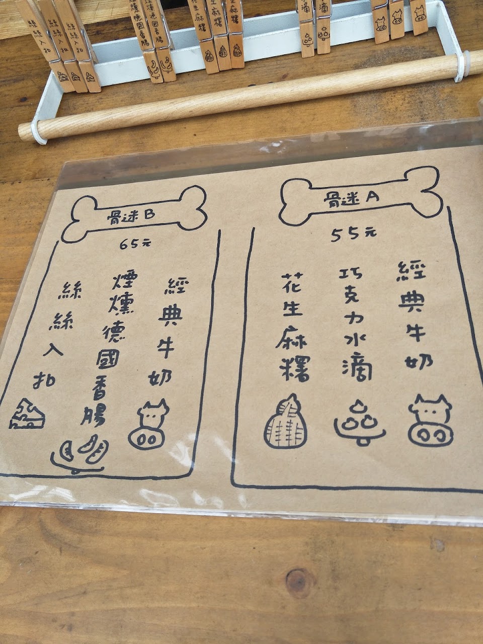 狗骨頭很大根很紮實,一份四根口味眾多,也有組合餐可以選擇。用料紮實口感綿密。