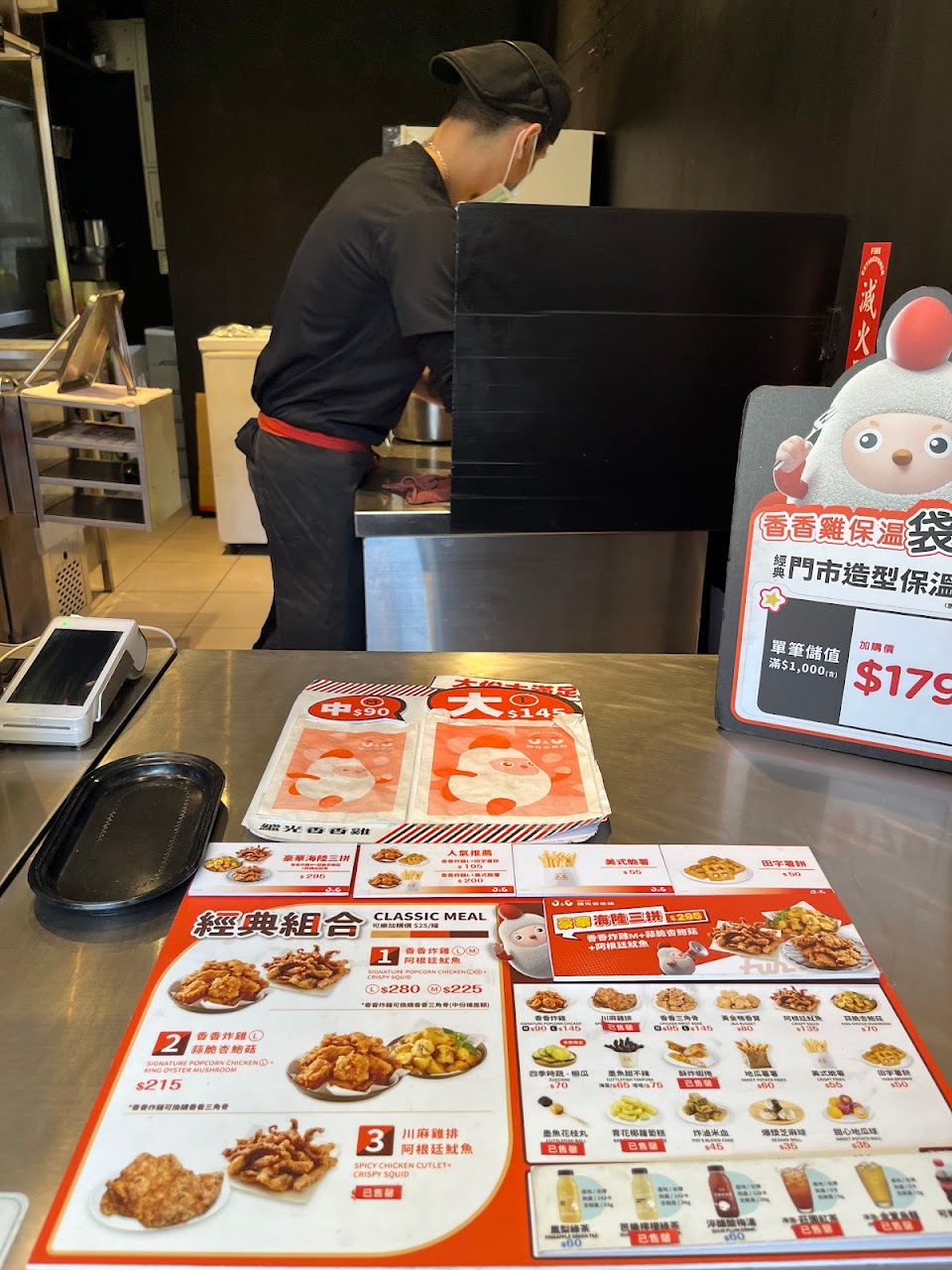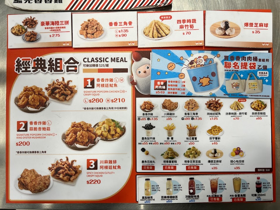 賣雞塊叫賣能懂,但是還掛喇叭麥克風有夠吵, 整個飲食空間都是香香雞的叫賣, 路過有多少推嬰兒車的都被嚇到哭, 店員還不知輕重繼續喊叫, 旁邊都是飲食座位區,沒得安寧, 沒有說賣場、美食區要很安靜, 但用擴音喇叭叫賣開超大聲很不ok。 好吃不好吃已經變得不是重點, 而是整體服務品質感覺變得很沒水準, 給一顆星⋯⋯能不給星真不想給。