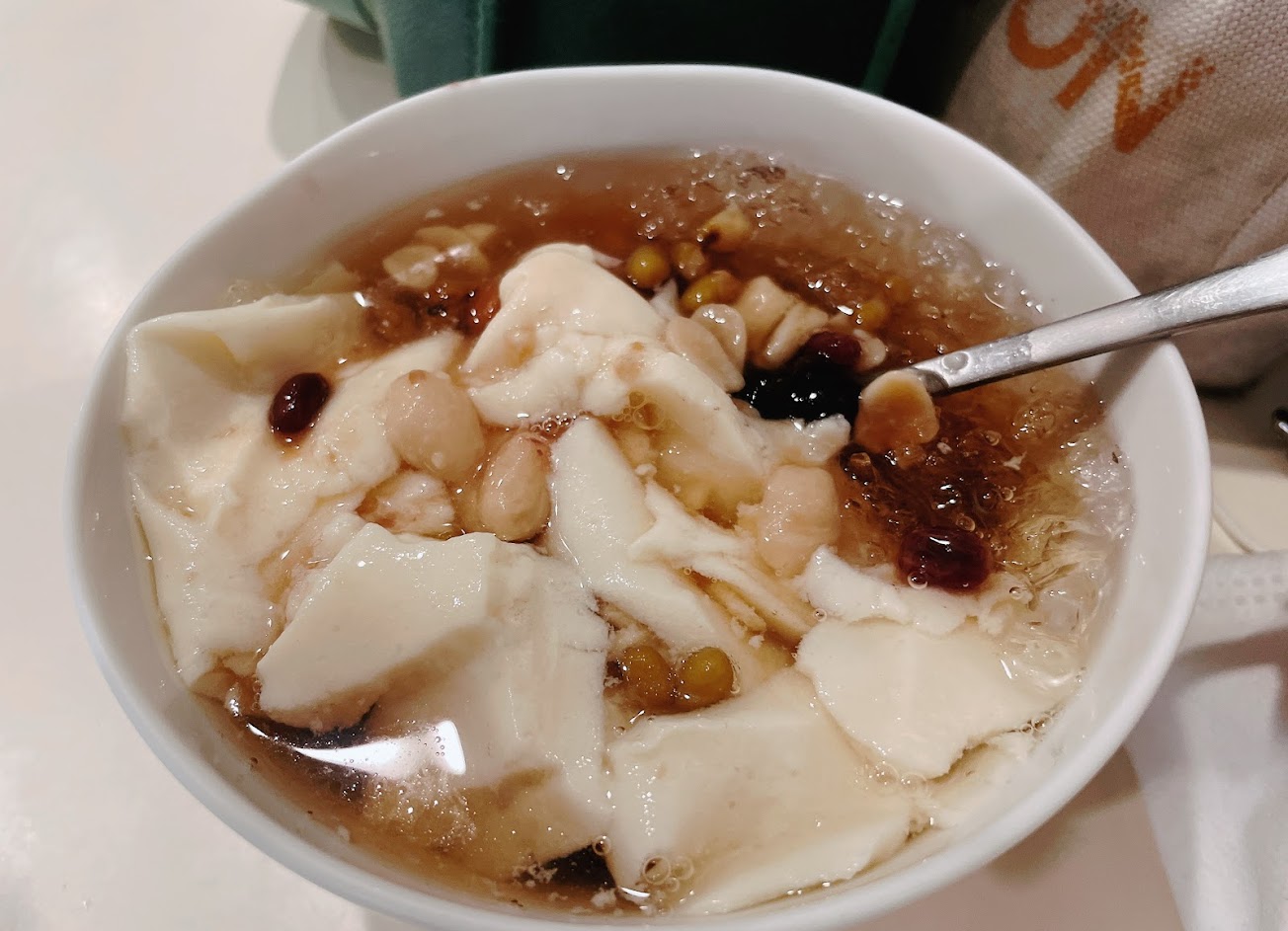 點了綠豆豆花,豆花很嫩好好吃,豆花附加的粉角相當軟Q卻不會過韌,很優秀的一道甜品!