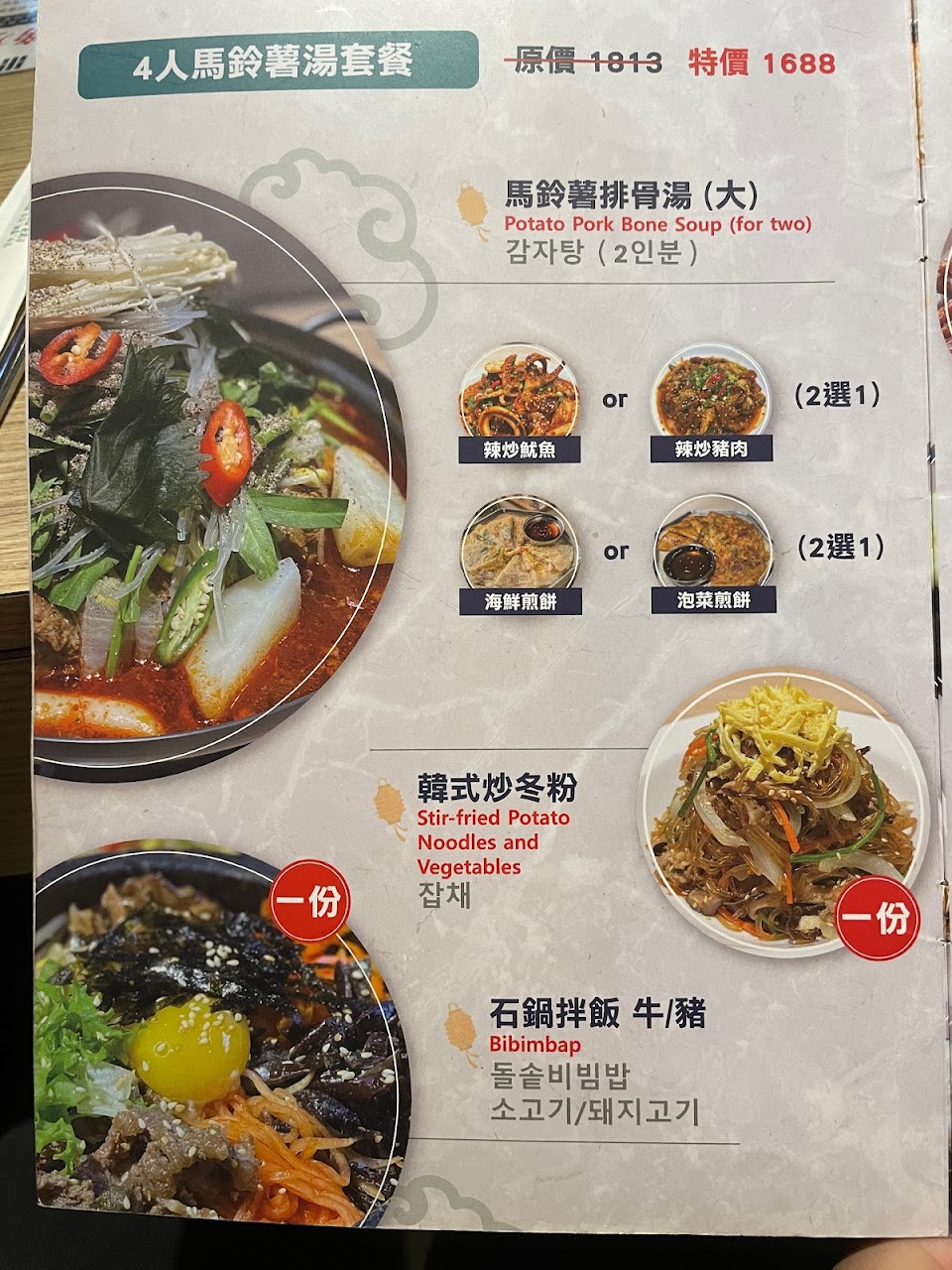 蒸蛋下面鍋底燒焦有苦味就算了,連上層的蛋都是燒焦味,還跟我說這是正常的味道?!吃飯有燒焦味是正常?邏輯?砂鍋類的湯味道也不韓國,可以用”難吃到吃不下”來形容,餐點食材沒有這個價值,完全不推,唯一一顆星給小菜可續