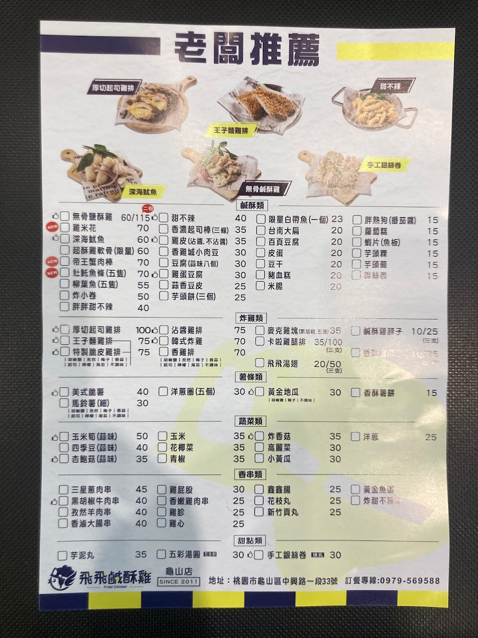 2024最新在地推薦餐廳的菜單_飛飛鹽酥雞-龜山店的菜單、圖片
