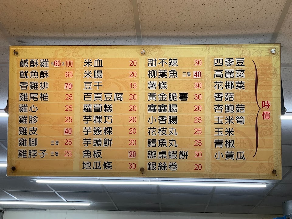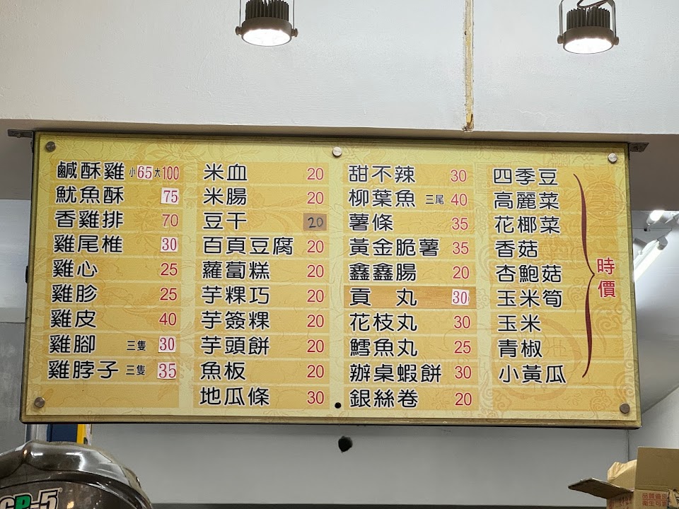 以前在國光客運旁邊,一段時間沒有營業後,後來搬到轉角文化二路寵物店旁邊復業,現在又搬到復興一路上面。各種炸物我覺得都不錯,魷魚會加洋蔥,蘿蔔糕,米血,雞排可以刷醬(跟中壢會刷醬的雞排,鹹酥雞店有點像)。