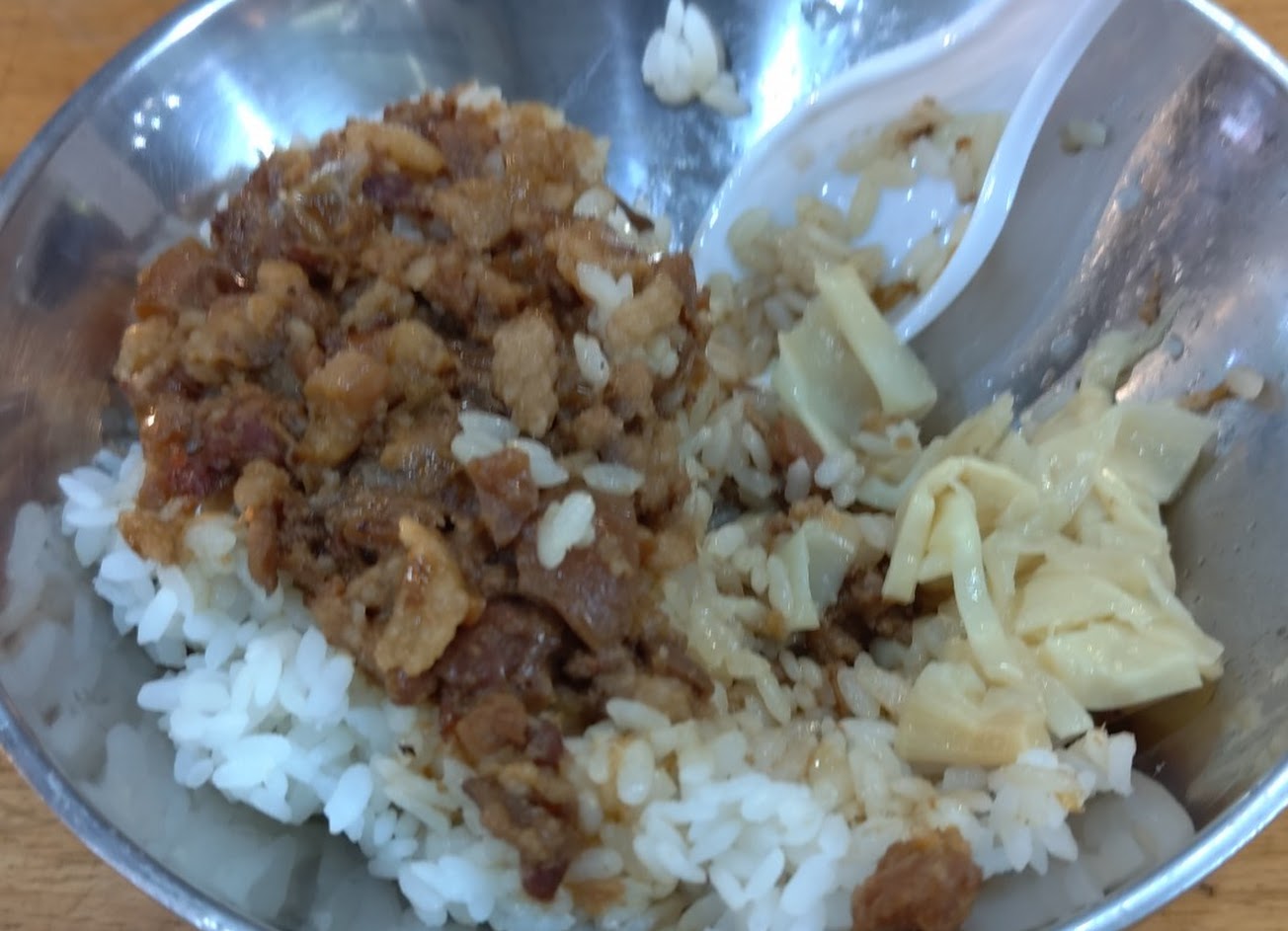 大份雞魯飯45元,份量跟一般便當相當,對我這個食量算大的人是吃得飽的耶,有機會的話下次試試特大份雞魯飯(65元)會不會吃到吐?;雞胸肉絲一般般柴(好像沒在桃園吃過肉嫩的雞肉飯內?),滷肉肉汁偏甜但吃多了也不膩,剛好拌勻包裹每一口飯