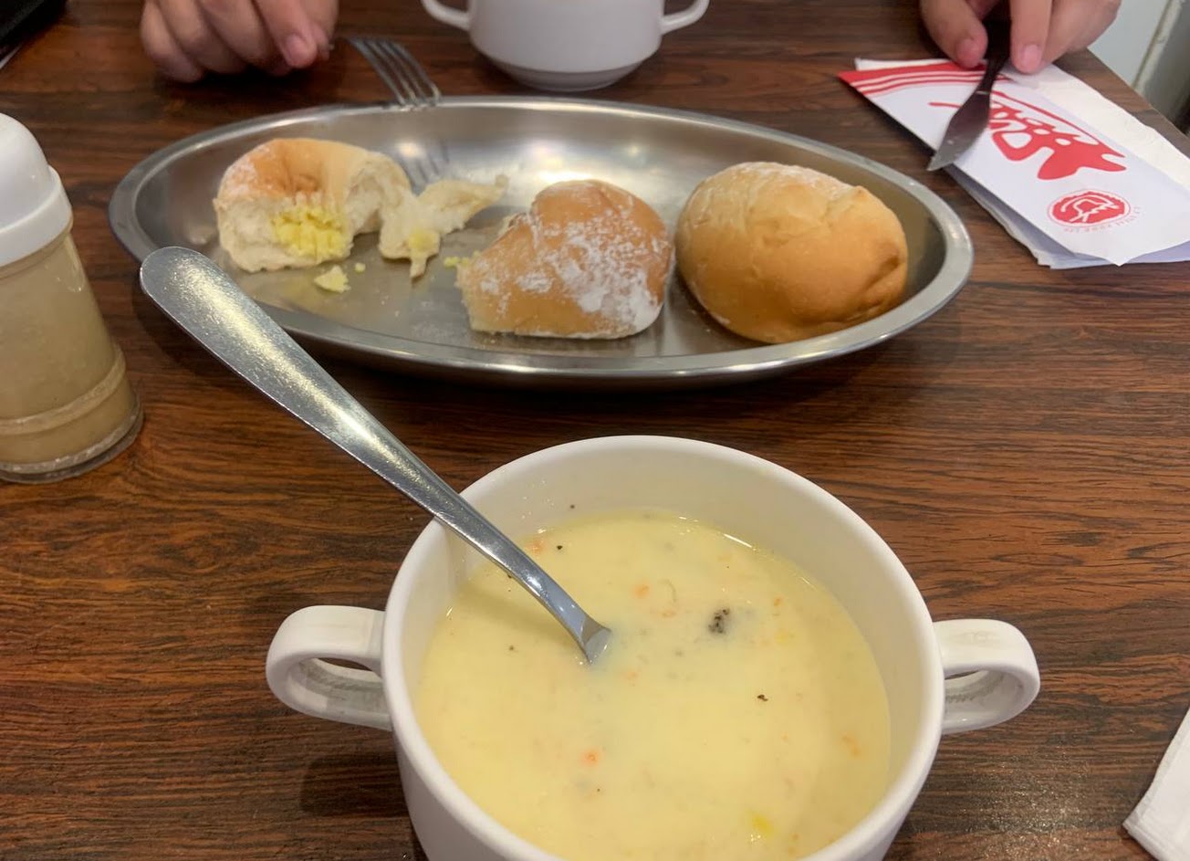 麵包 玉米濃湯 慶豐豬排 餐包 玉米濃湯