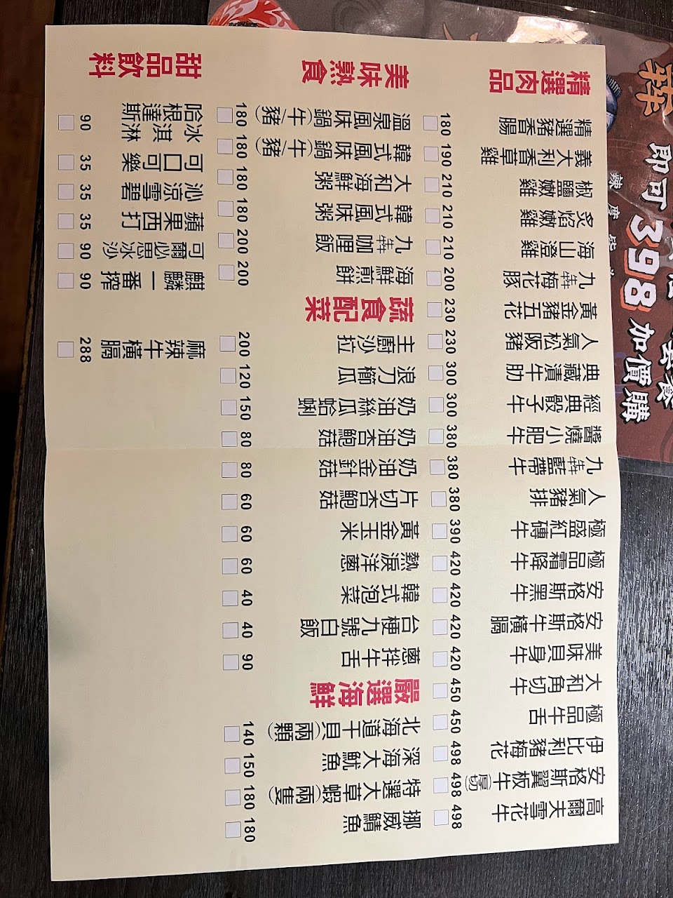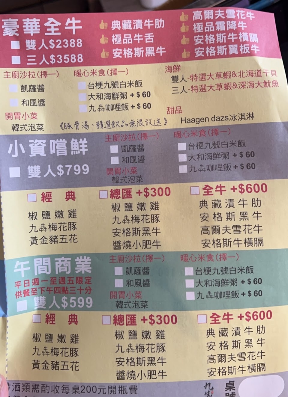 2024最新在地推薦餐廳的菜單_九犇日式燒肉的菜單、圖片