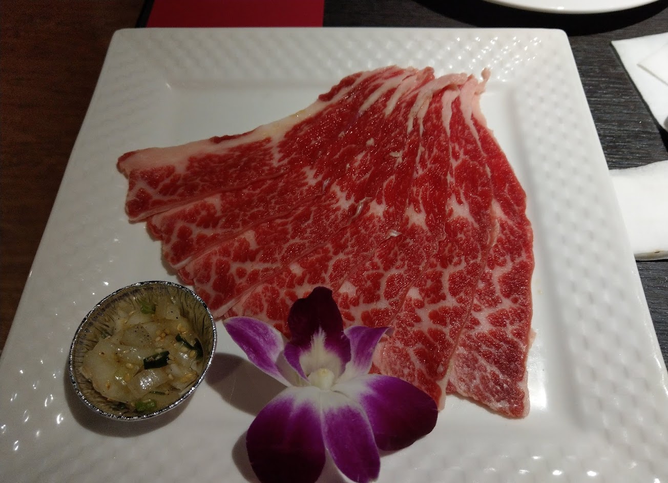 肉質還不錯,服務普通,換烤網要自行找服務生,四人點三人套餐吃很飽,一人約7.8百,附近有一個停車場。