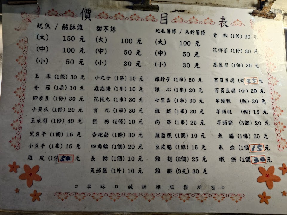 2024最新在地推薦餐廳的菜單_車路口鹹酥雞的菜單、圖片