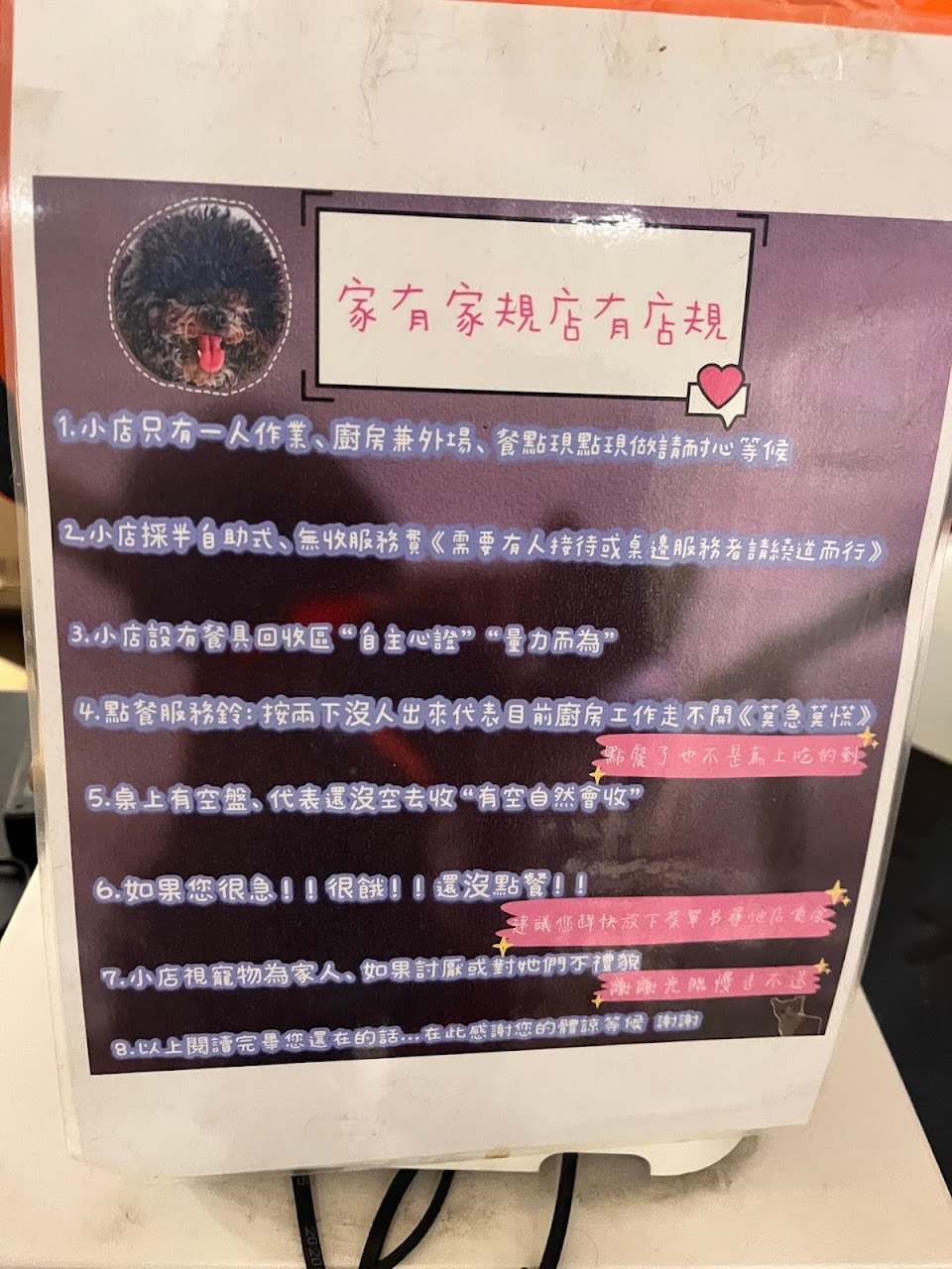 店內設有店規,但僅有小小一張放置在櫃檯,不太有機會看到,離開後看自己拍攝的照片,才發現原來店家希望能協助收拾碗盤