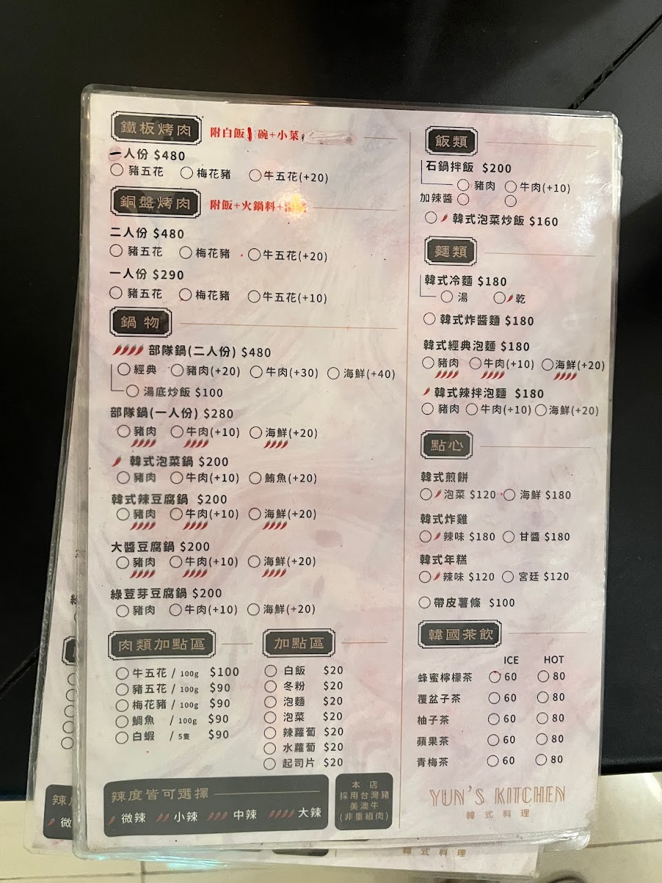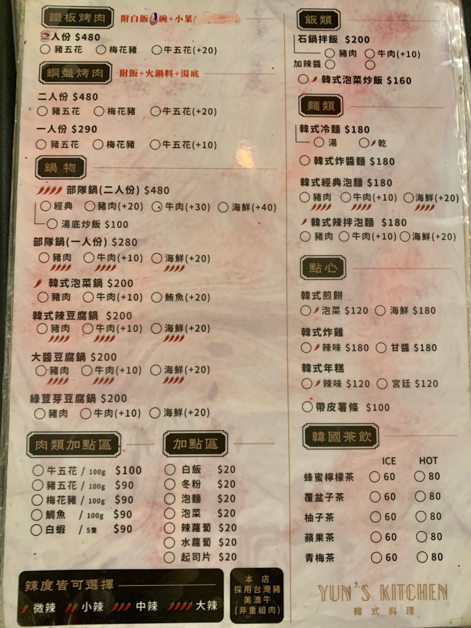 2024最新在地推薦餐廳的菜單_Yun’s kitchen 韓式料理(最後收客時間21:55)公休時間依臉書為主的菜單、圖片