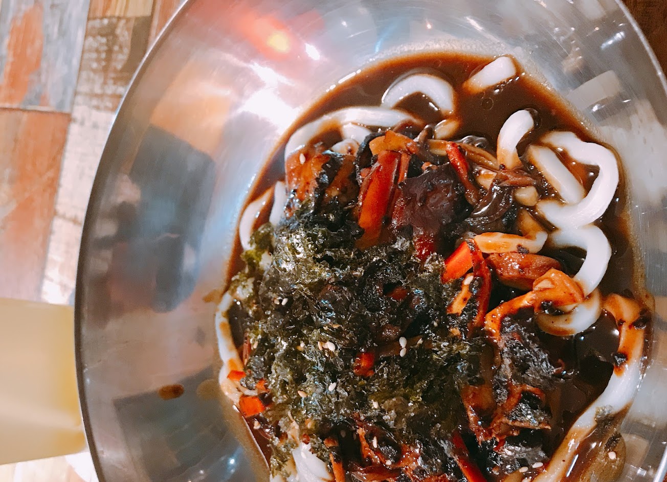 炸醬麵微甜,算是在台灣吃過算好吃的韓式炸醬麵
