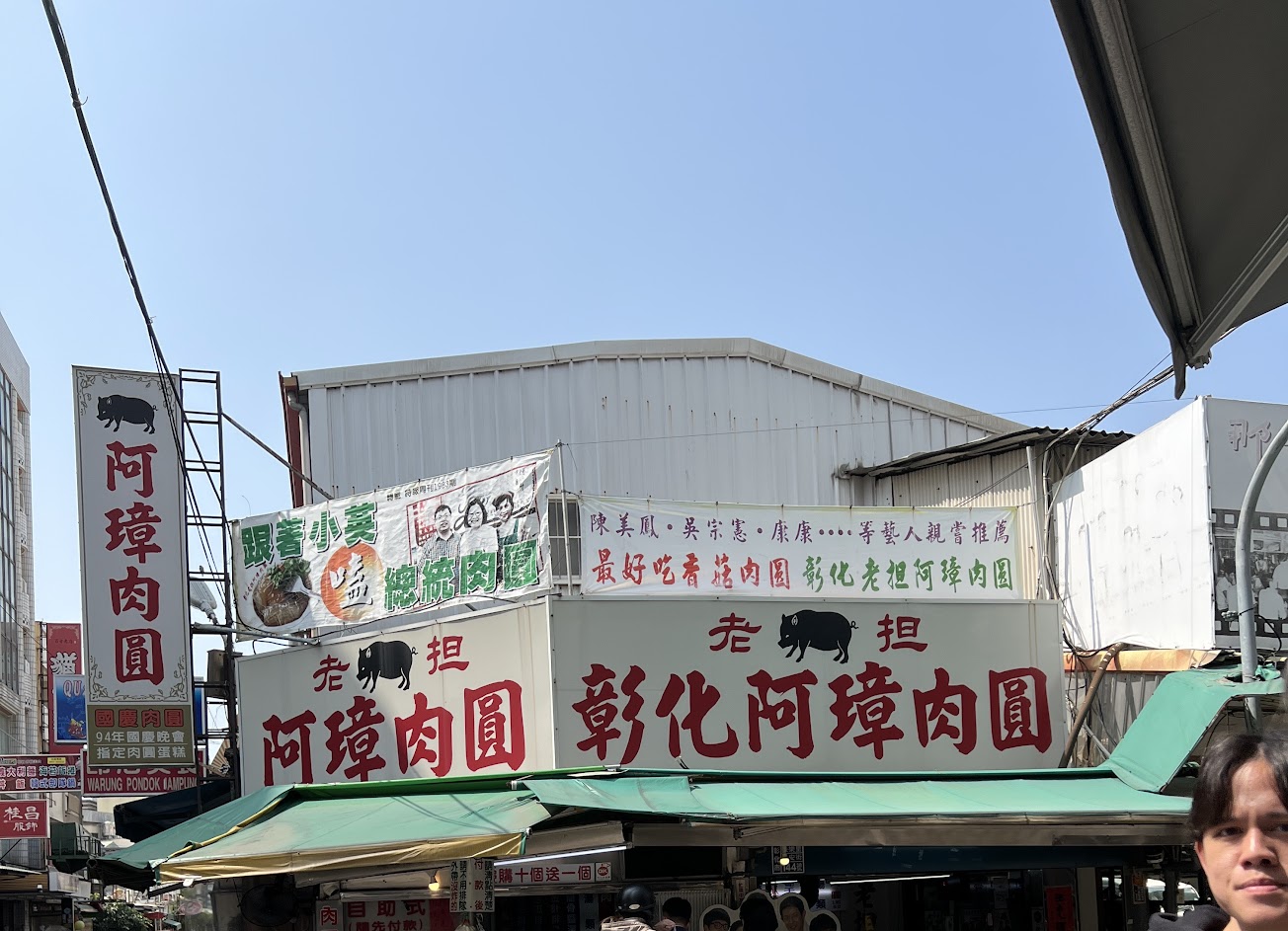 彰化肉圓牛逼的不行,看到店門口就馬上看到 那些年 的扛棒有很多名人 要內用的話可以先去店內找位置 然後再出去跟第三張的婆婆講要什麼可以自己端走,到店內坐下後每一桌都有香菜還有甜辣醬可以加,辣醬的辣度剛剛好,吃辣的一定會很喜歡,不吃辣的也可以試試,有加的跟原味比起來差蠻多的,肉圓是炸的,外皮不會因為甜麵醬變的太軟糯,內餡也很特殊裡面是豬肉,也有加一整顆的香菇讓我很驚喜,阿章肉圓算是彰化必吃的小吃