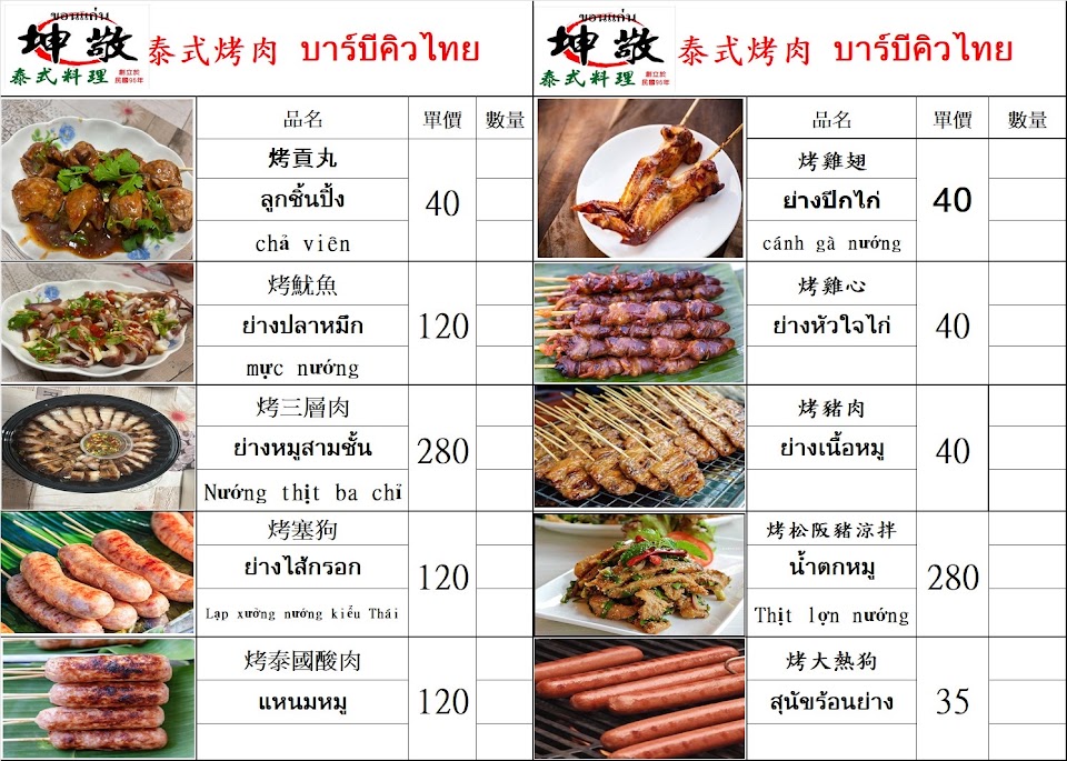 2024最新在地推薦餐廳的菜單_泰國小吃店(坤敬)的菜單、圖片