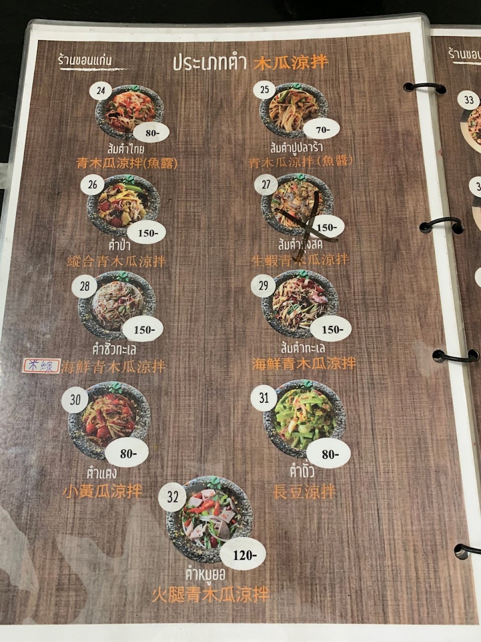 涼拌木瓜跟泰國吃的一樣好吃,打拋雞肉會不知不覺把它吃晚,品項很多可以有很多選擇