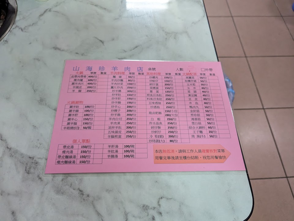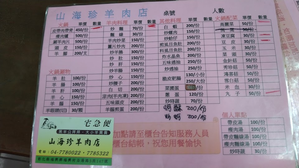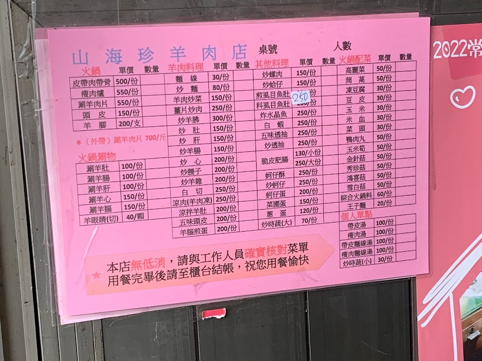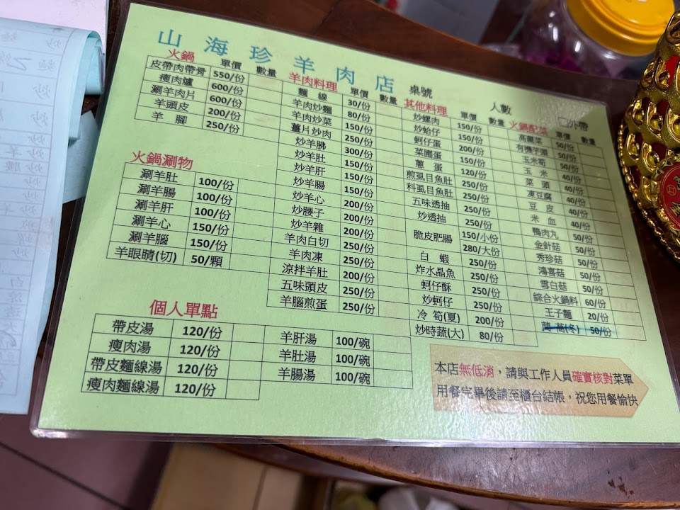 2024最新在地推薦餐廳的菜單_山海珍羊肉店的菜單、圖片