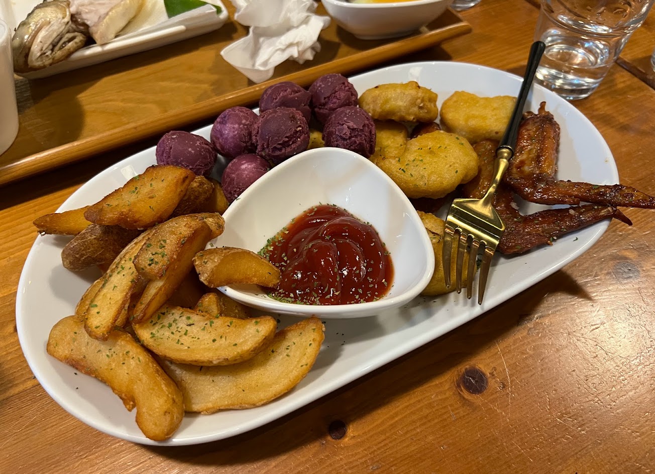 比較可惜,蔬食餐點很少,而且當天唯一有的晚餐也缺貨,所以改點了焗烤馬鈴薯,跟奶酒,不雷。