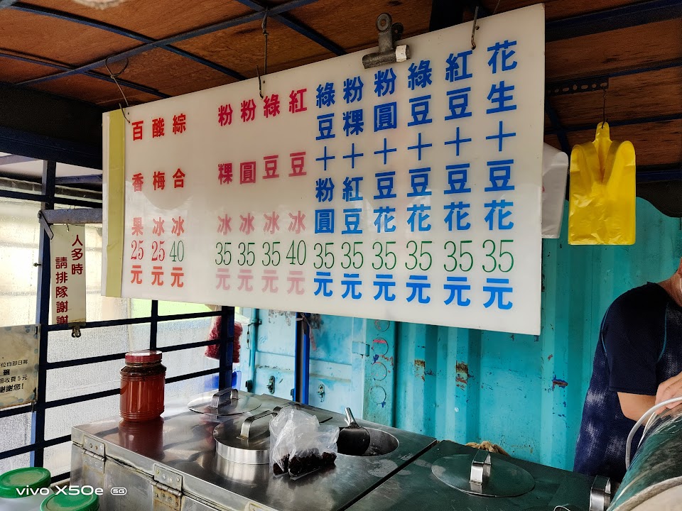 只營業夏季,在番花路上的車車攤販,有個鐵皮屋可以遮雨及遮陽。有豆花、紅豆、綠豆、粉圓、粉粿、花生……等等,可以任意搭配,重點是他的東西很便宜又好吃???,提醒大家挫冰完全溶化掉時,比較不甜! …