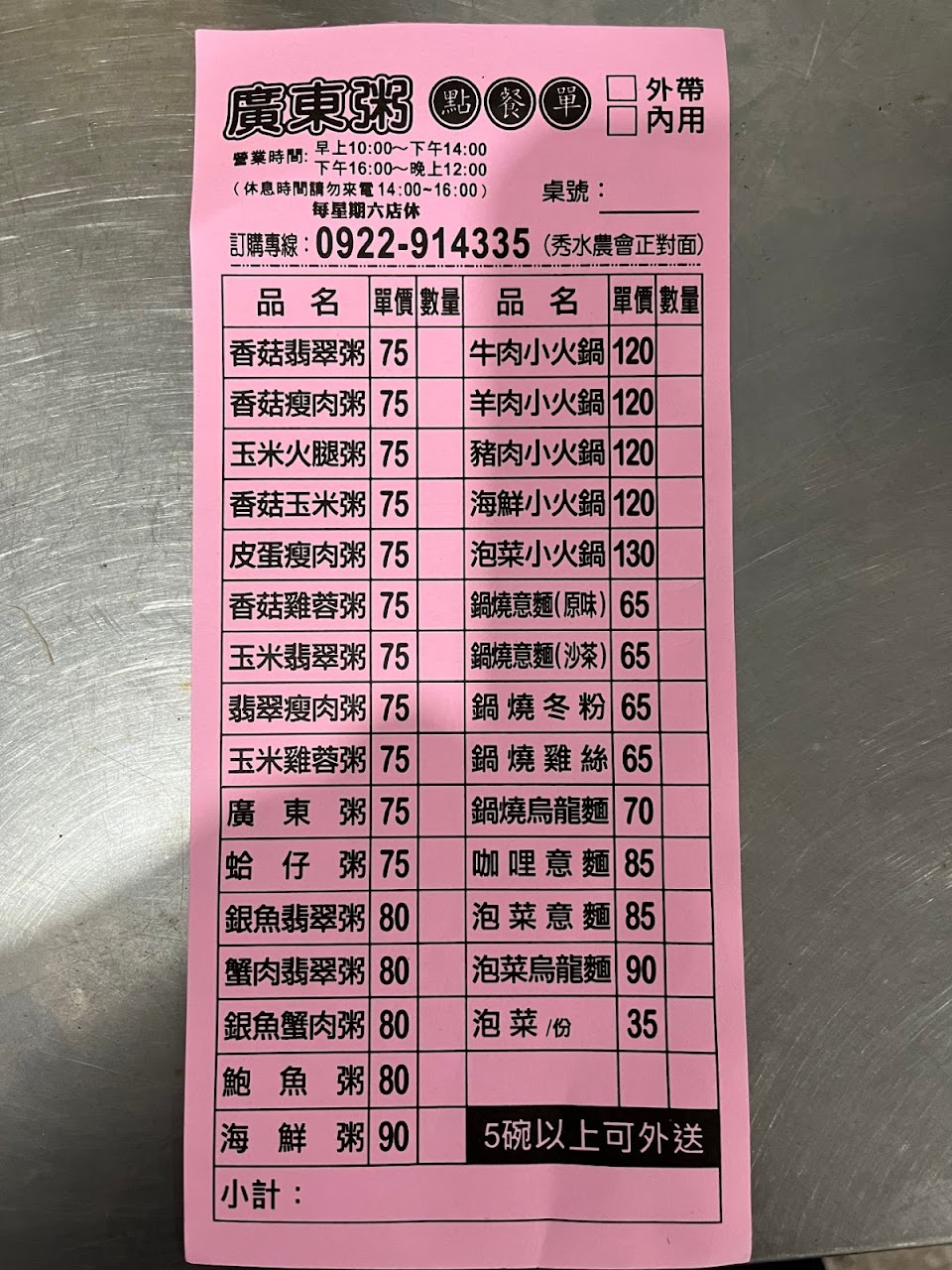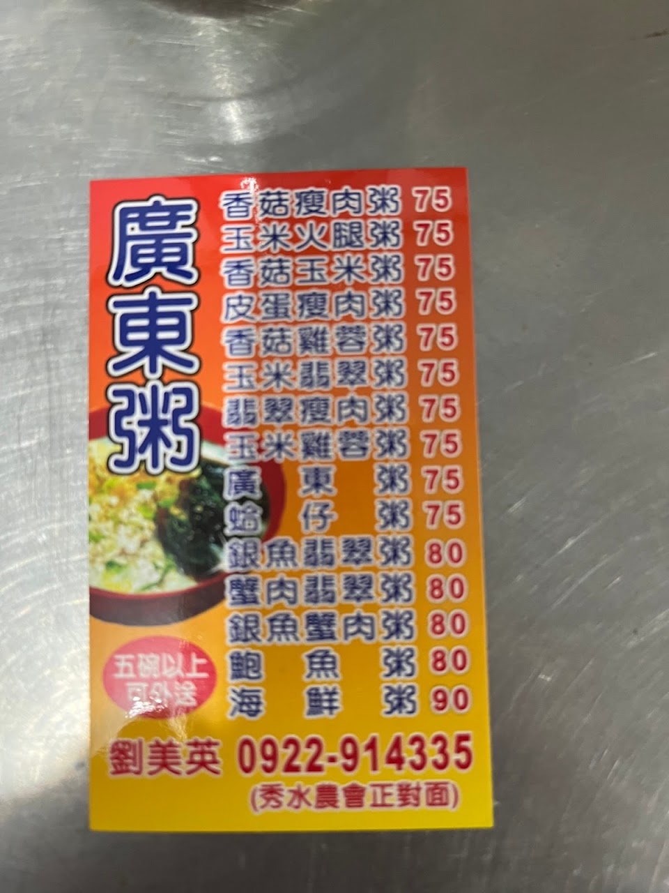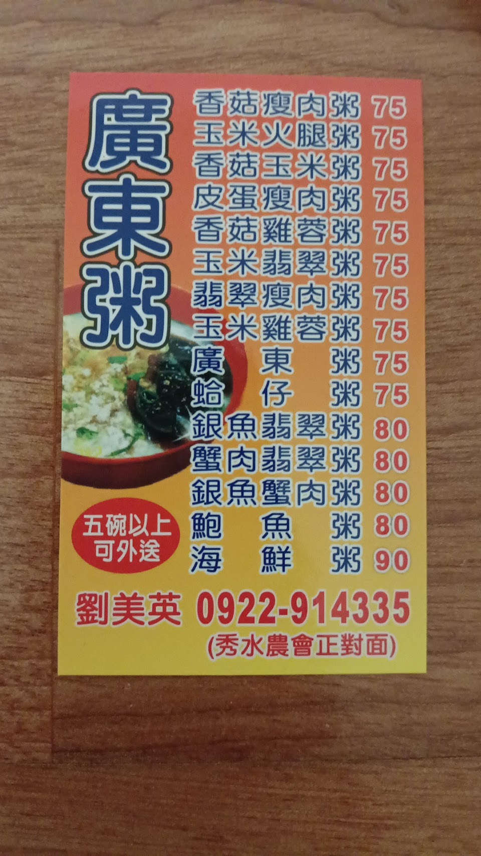 2024最新在地推薦餐廳的菜單_秀水廣東粥的菜單、圖片