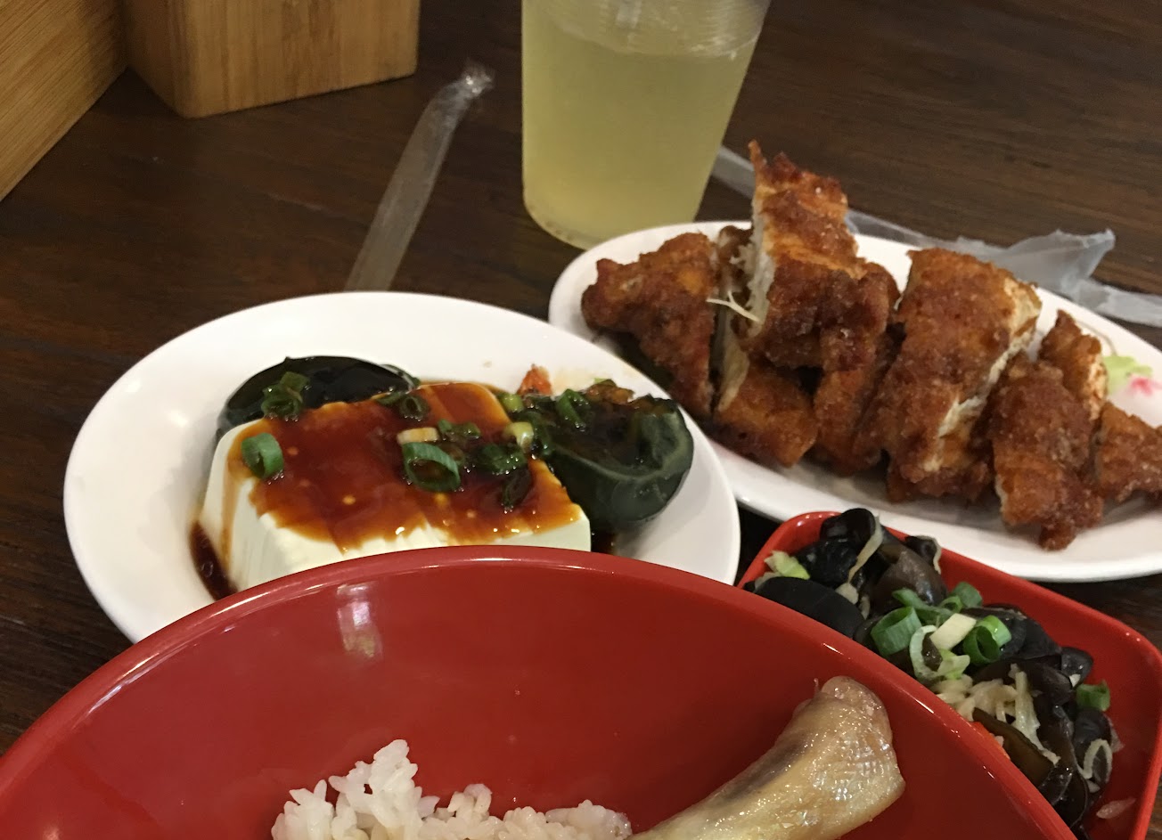 環境中小,座位還算足夠,翻桌率可接受,但附近沒什麼停車位? 原本聽說上菜要等很久,但這次很幸運,很快就上菜了。 招牌豬油拌飯很經典好吃,蜜汁雞排炸的剛好,皮薄酥脆? 土魠魚直接吃或拌進羹湯泡軟都好吃,有不同的口感? 飲料只有兩種,仙草茶和檸檬奇亞籽,都很搭餐點