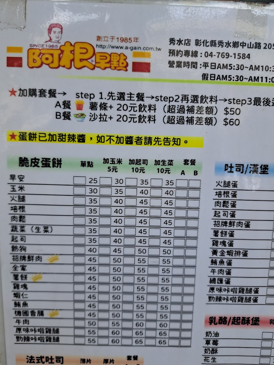2024最新在地推薦餐廳的菜單_阿根早點的菜單、圖片