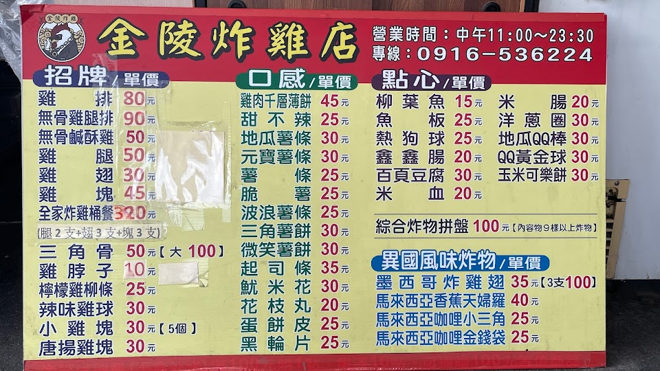 2024最新在地推薦餐廳的菜單_金陵炸雞店的菜單、圖片