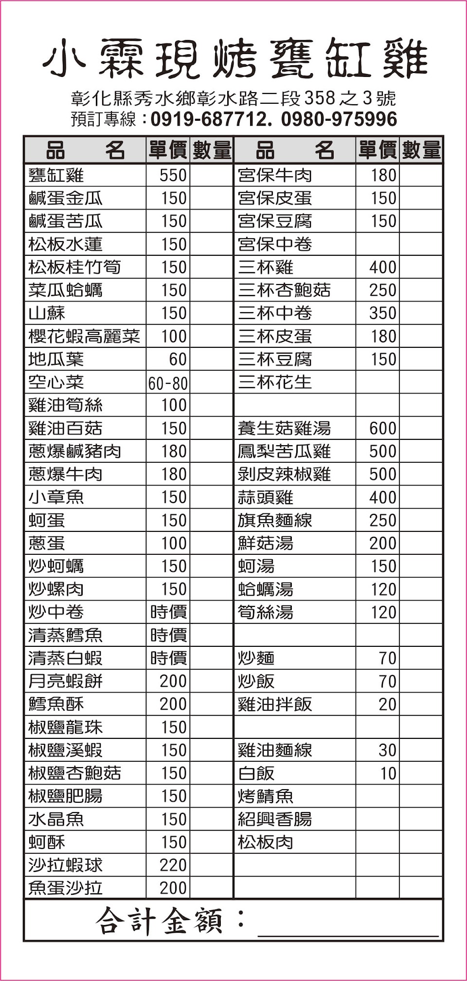 2024最新在地推薦餐廳的菜單_小霖現烤甕缸雞秀水店的菜單、圖片