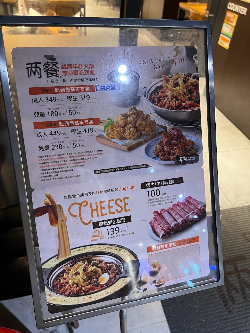 Cp值不太划算 1030/2人 (兩人+肉+起司) 起司一上來時覺得很新奇 魚板蔬菜好吃 除此之外就都還好了… 牛肉不太好吃 吃到飽有點勉強