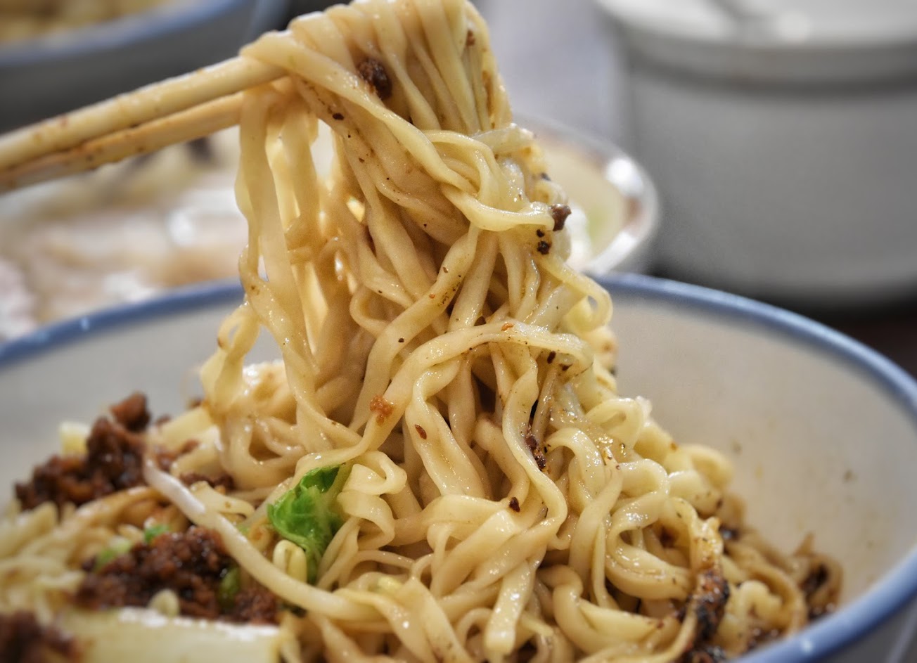 光看店家門面就不同於一般麵館,感覺有日式拉麵店的精緻風格,而所賣的是傳統的古早味意麵,Q彈帶勁不軟爛的麵條,搭配類似台南担仔麵由瘦肉精燉的肉燥,油蔥香氣十足,若再加他們家特製麻而不辣,香而不嗆的辣醬,椒香混合著肉燥香,吃起來更是過癮。
