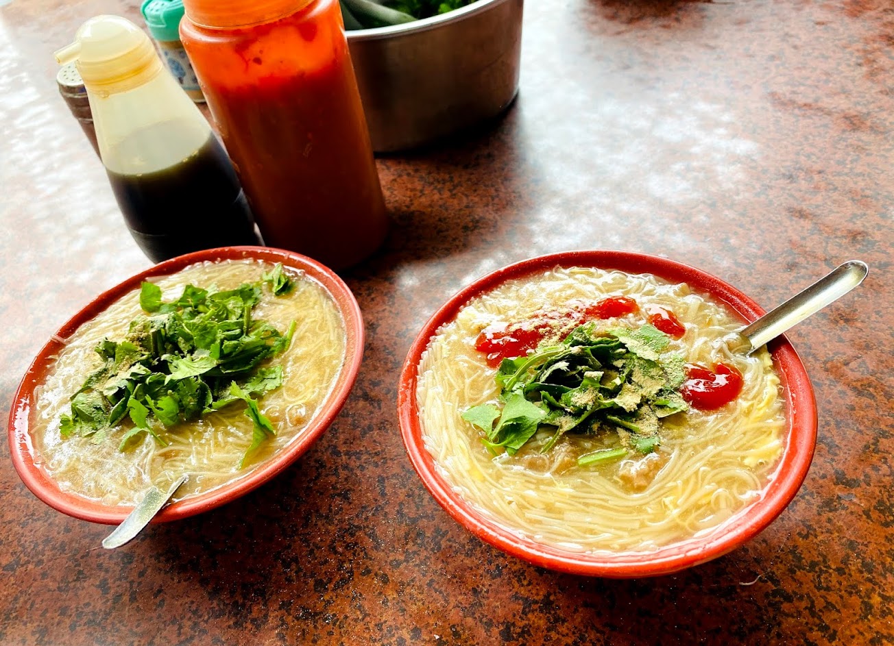 香菜可以自行取用,幾乎不用等,速度很快,但上桌撲鼻而來的臭酸味,不是陳醋 ,而是麵糊裡,但吃起來就….小碎肉的豬味很臭,後悔跟著當地人走進來,好多人。