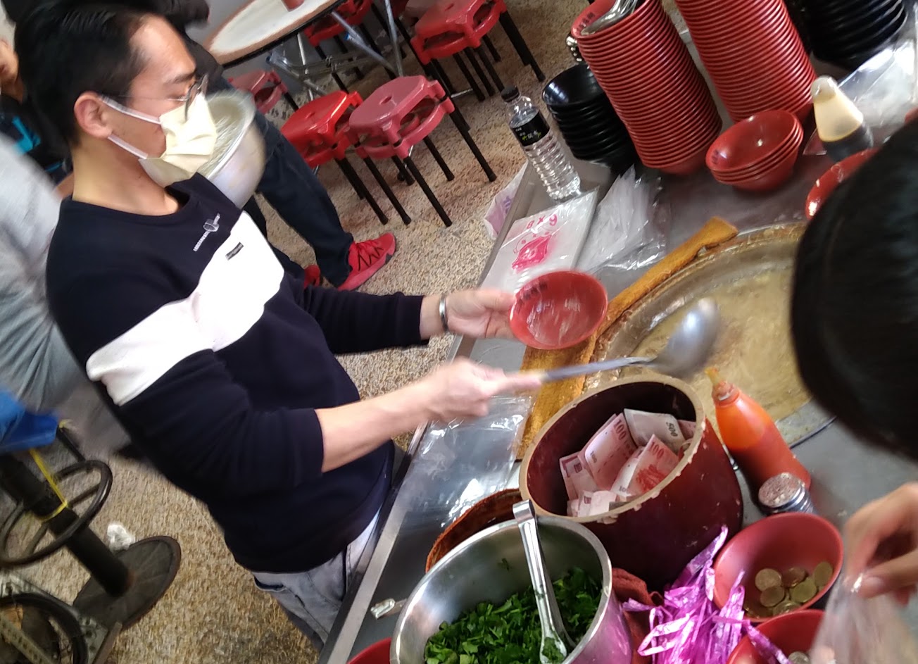 當地人推薦的熱門早餐,一碗25元超便宜,香菜也給的很豪邁,一整盆自己斟酌食用。內用位置夠多,雖然週末人滿為患但也不太需要等候。