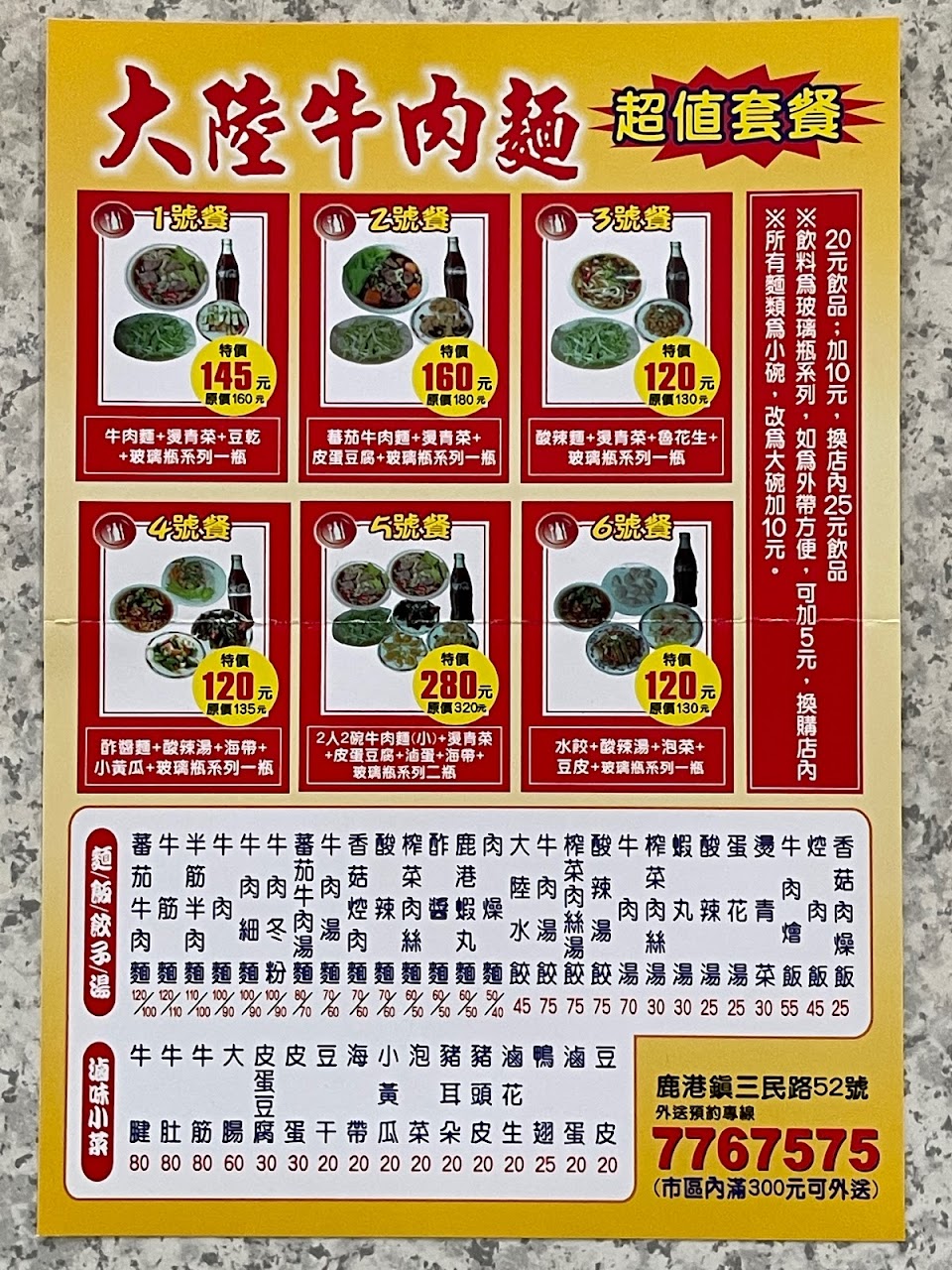 2024最新在地推薦餐廳的菜單_大陸牛肉麵的菜單、圖片