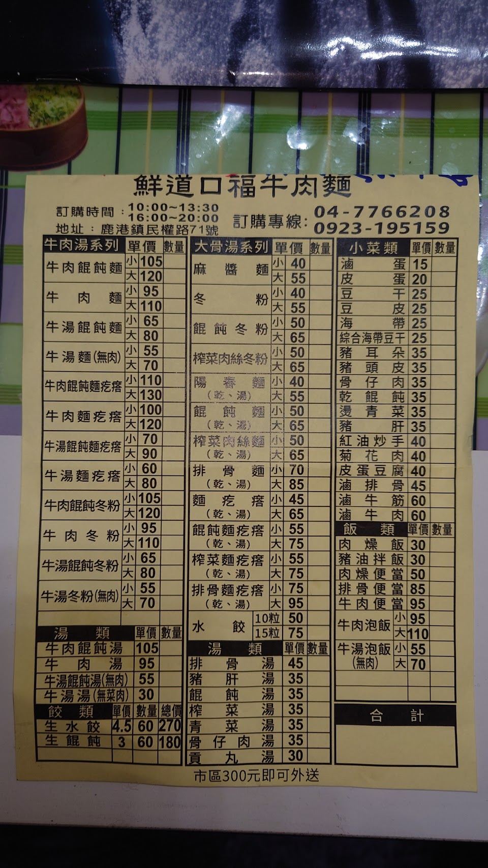 2024最新在地推薦餐廳的菜單_鹿港鮮道口福牛肉麵的菜單、圖片
