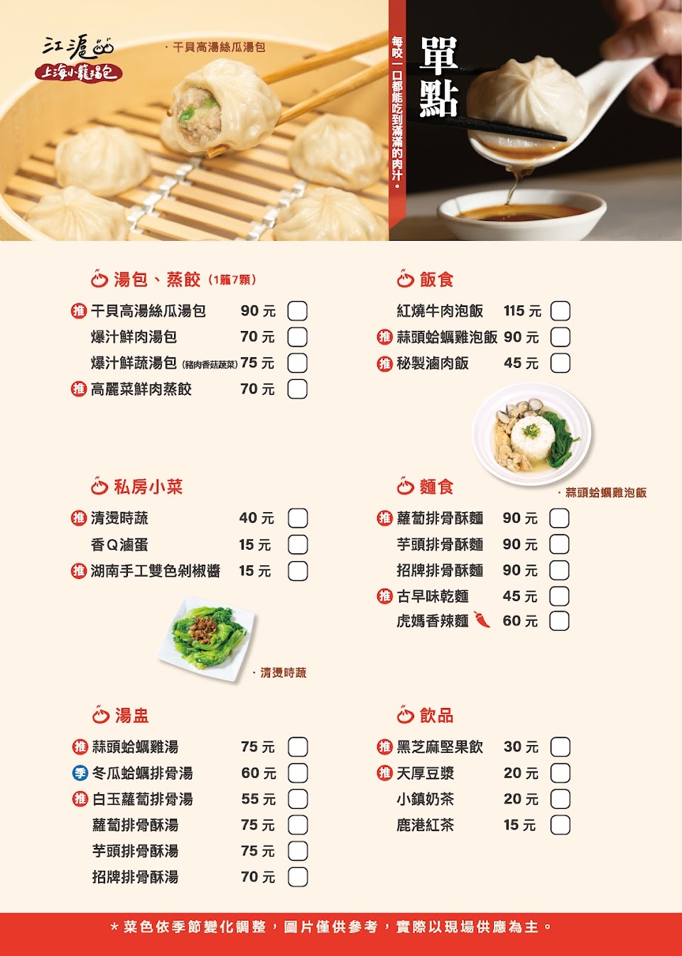 2024最新在地推薦餐廳的菜單_江滬上海小籠湯包 彰化鹿港店的菜單、圖片