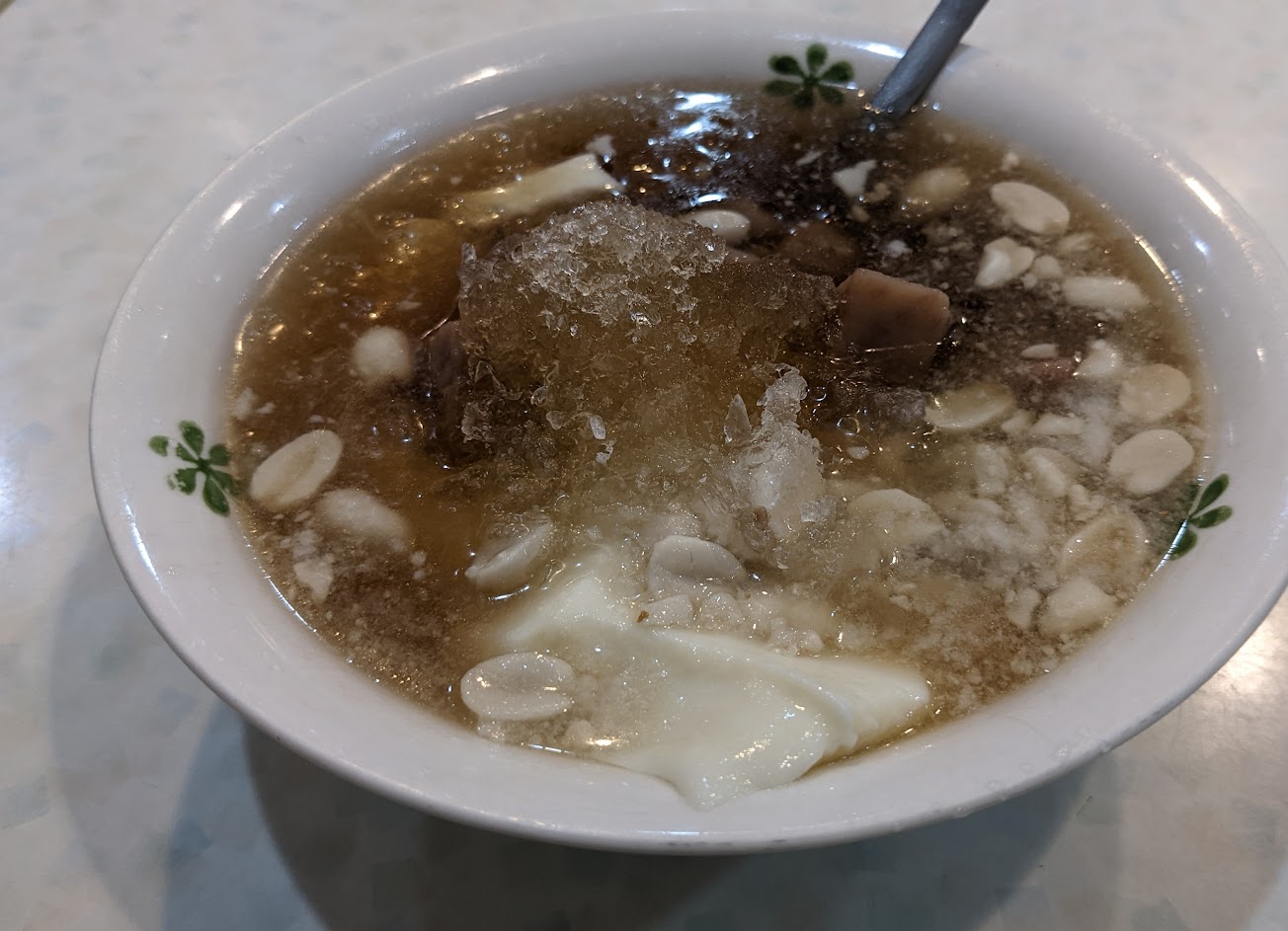 花生口感不錯但量蠻少的,湯圓、芋頭太軟爛,紅豆口感偏水,糖水不錯,刨冰的冰渣很多,口感不佳,考量價格、環境整體還行