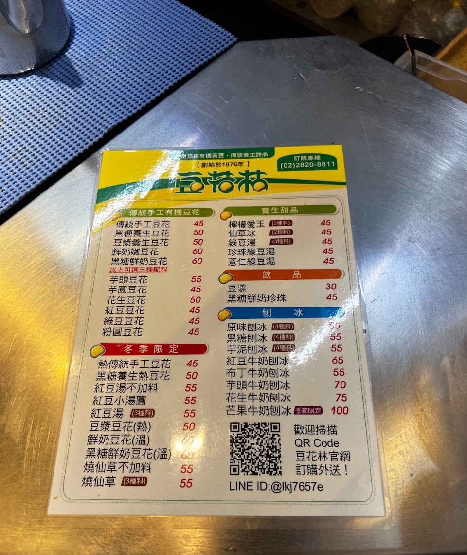 花生豆花加地瓜圓一碗45元,在台北市算是CP值很高的豆花。 路過口渴的,可以入內來一碗冰品豆花。 最近天氣炎熱,很想把走過路過的豆花吃一遍,順便寫一些台北豆花PK。(只能評論我可以經過路過的) 想要評論比較,還是要制定一點標準。 所以決定以花生豆花加粉圓用來比較。 決定之後經過的第一間,就是豆花林。 在排隊等待時,配料區的包心粉圓,芋圓地瓜圓完全吸引了我。 心中默唸,花生豆花加粉圓花生豆花加粉圓⋯⋯ 最後,還是點了花生豆花加芋圓⋯⋯腦波需要加強鍛練。 但是不得不說,豆花林的芋圓和地瓜圓非常好吃又Q彈,芋頭和地瓜本尊含量應該有70%,吃涼水就是要相信直覺,看到想吃的,就點起來。 豆花林的豆花,是我非常喜歡的滑嫩型,充滿黃豆香氣。 美中不足的是,糖水和豆花的味道有點搭不起來,糖水世界真是一個深奧的宇宙。 我不懂得如何制做美食,純粹表達自己食用的心得,衷心感謝各位老闆提供的各種美味小食或大餐。 店家多見諒小小的不專業淺見。