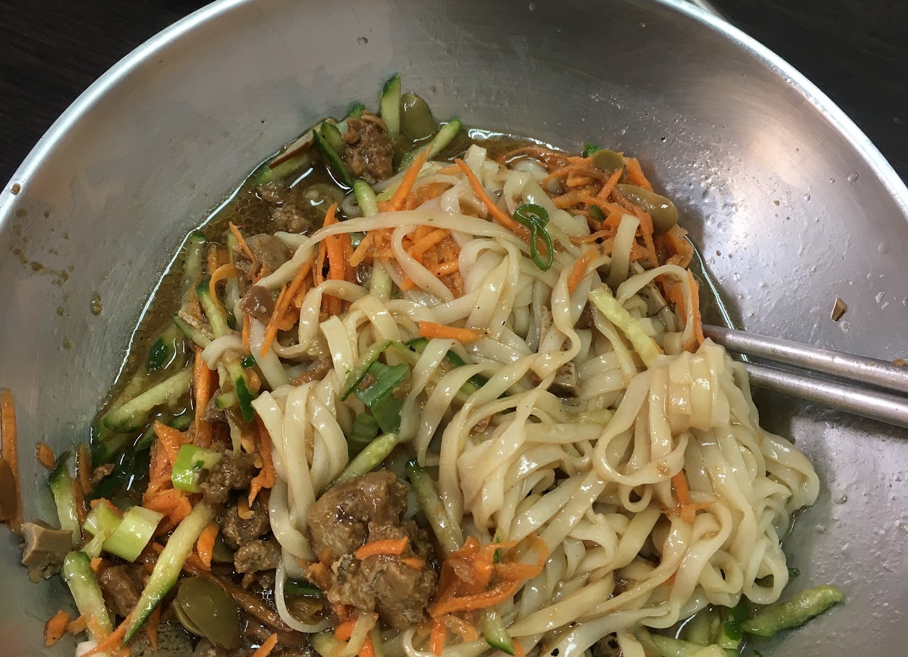 平淡的水餃經由老闆的特調,香、麻而不會太辣,一個接一個一下子就沒了 好吃到咬到舌頭(痛)。現場吃一定更美味。提醒老闆油加少些