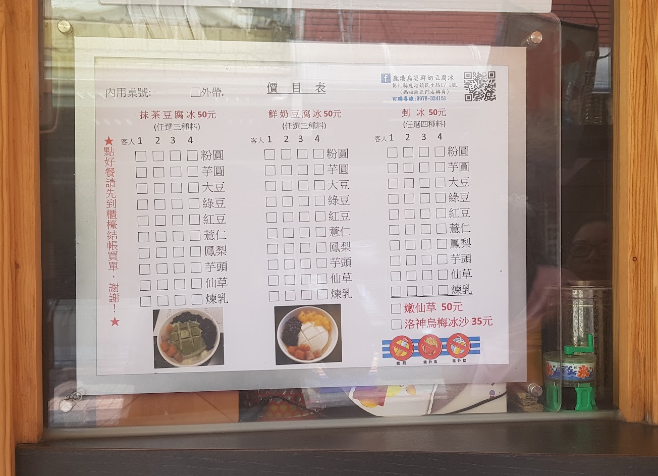 小店乾淨 豆腐冰跟嫩仙草都好吃 仙草的芋圓和豆腐冰的芋泥 有東東粉圓的水準 不介意攜帶外食 自行清理即可