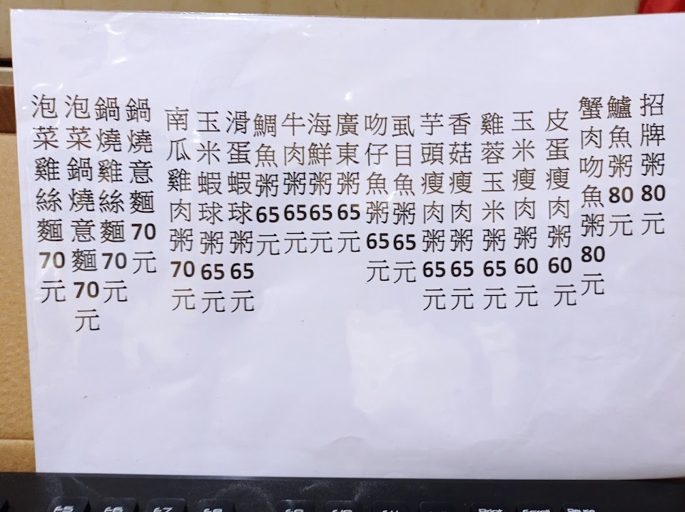 1070920太太不舒服,要吃廣東粥60。去年此時也是不舒服,來買過粥。太太說不好吃,料少又貴。